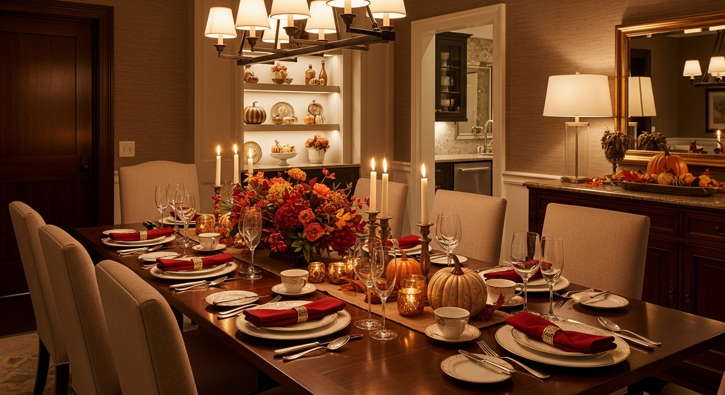 Smart lighting sets the emotional foundation for a warm and inviting Thanksgiving home.